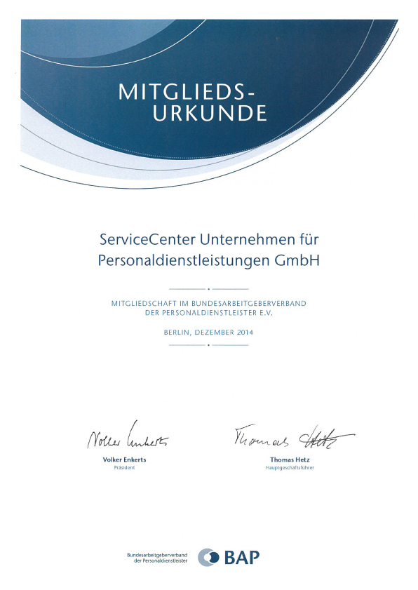 Mitglied im BAP Bundesarbeitgeberverband der Personaldienstleister e.V., Berlin